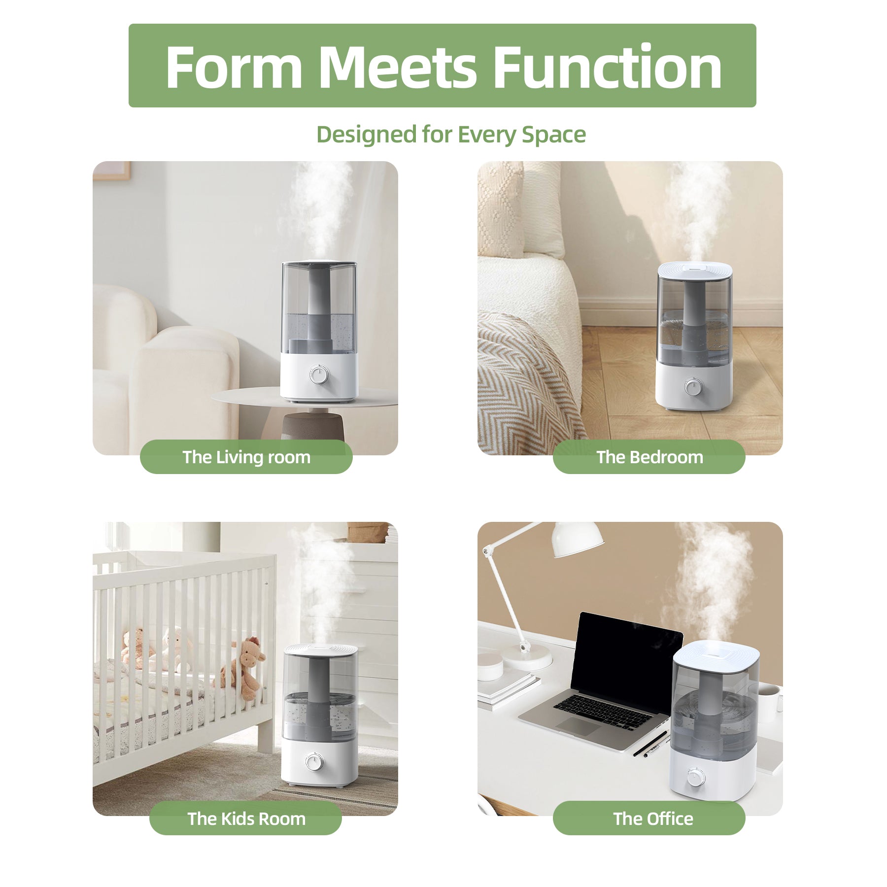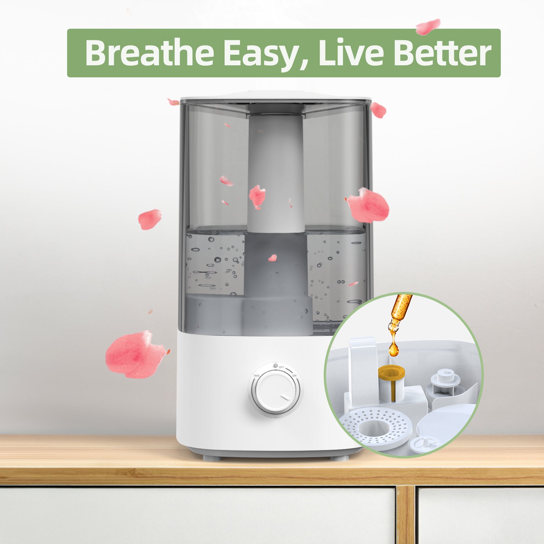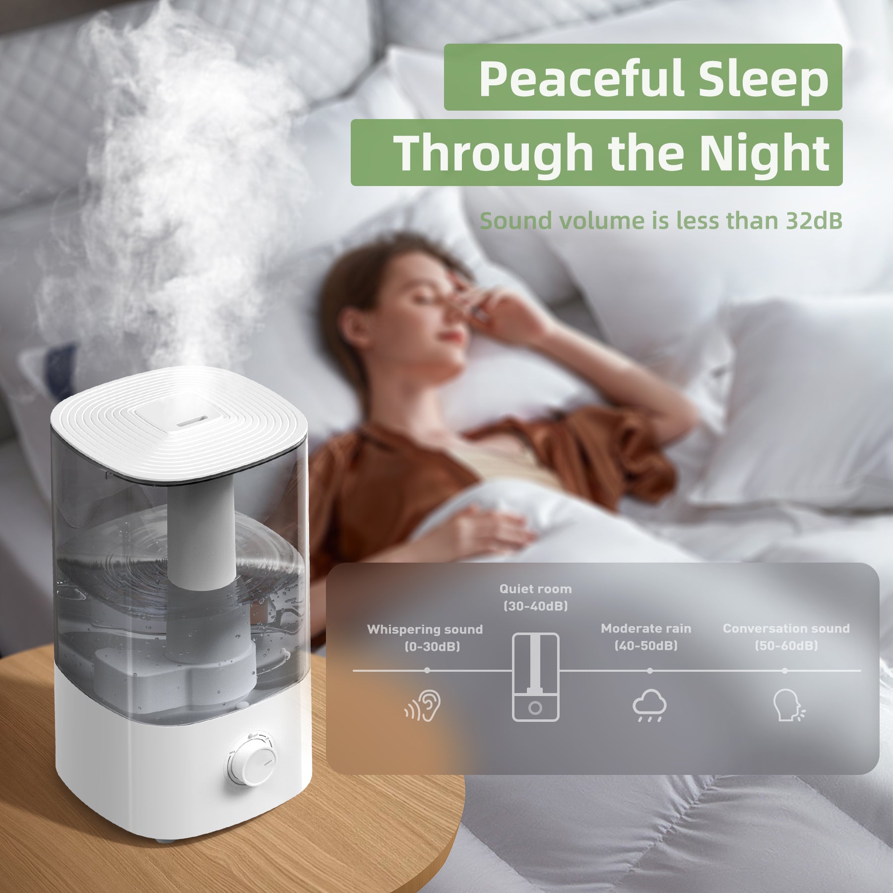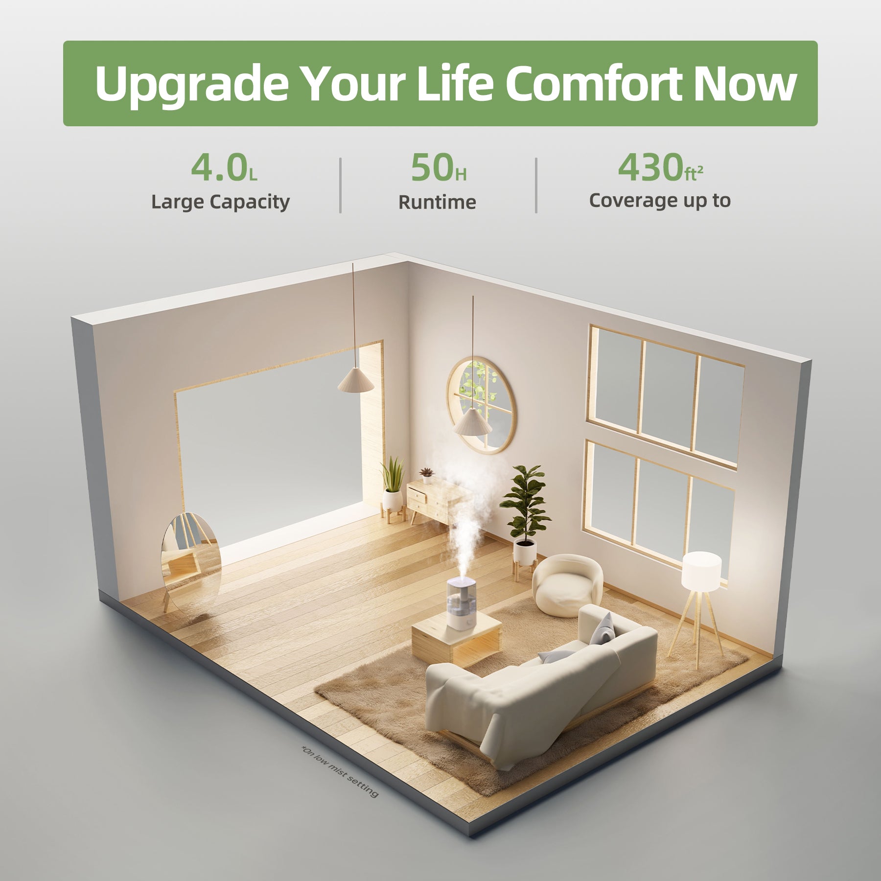 4L Large Capacity: With a generous water tank, the Humidifier can run for 50 hours, providing continuous moisture and relief from dryness.