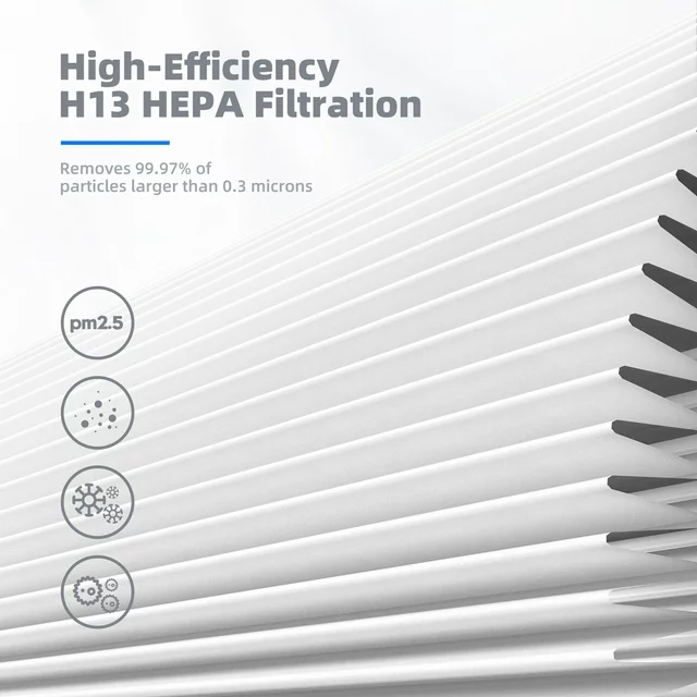 H13 True HEPA filter layer is used, which meets the high-Efficiency Particulate Air (HEPA) standard. It can filter 99.97% of airborne particles larger than 0.3 microns.